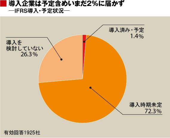 IFRSは、現在、欧州を中心に100カ国以上で採用されている。日本でも金融庁の諮問機関である企業会計審議会が、2009年にIFRSを自国基準とする検討を開始、15年ないし16年に「強制適用」する見通しだった。だが、東日本大震災を境に強制適用はトーンダウン、各社に判断を委ねる「任意適用」の段階で議論は停滞している。