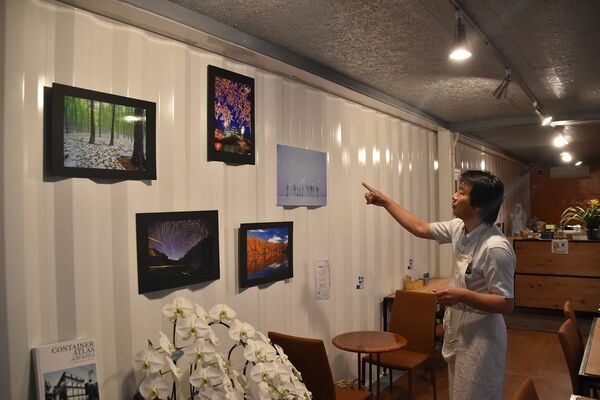 カフェの写真を紹介する平原さん