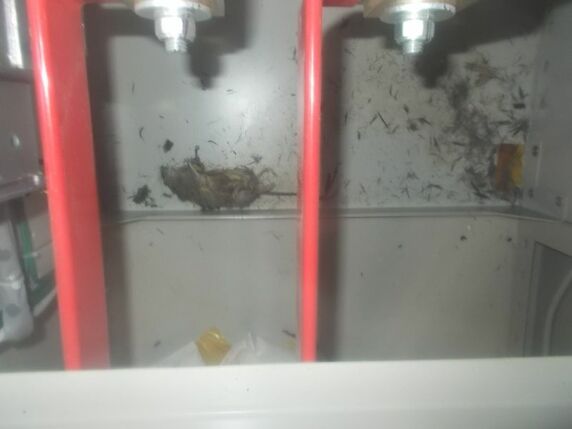 東京電力は3月20日午後4時30分からの記者会見で、仮設電源盤の壁面や計器用変流器(端子)がすすけていることを示す写真(=タイトル下写真=)を公表。電源盤の下の床に、体長15㌢㍍程度のネズミと思われる小動物が死んでいたことも明らかにした。