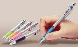 たとえば、自然な柔らかさを実現できることから、筆記具のグリップ部分に「αGEL」を取り入れ、究極のフィット感と癒やされるにぎり心地を実現したものもある。
