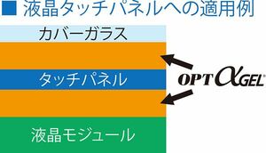 注目すべきは「αGEL」の光学的な性能であろう。「『αGEL』は光透過性が高いのも大きな特長です。この特長を最大限に発揮できる『OPTαGEL(オプトアルファゲル)』をディスプレイの液晶表示装置(LCD)とタッチパネルの間に使用することで、輝度や視認性が向上します」(黒田氏)。