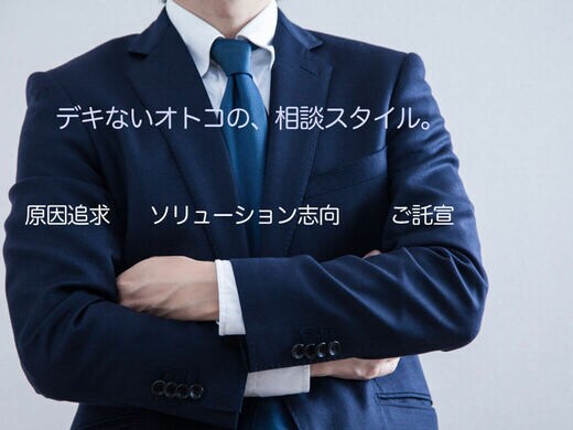 相談者の相談をコタエのある問題解決クイズみたいにとらえてしまい、自分の「ソリューション」が正解だとご託宣をごりごり押す。デキないオトコのコミュニケーションは、まさに相談したくないタイプとぴったり合致します。