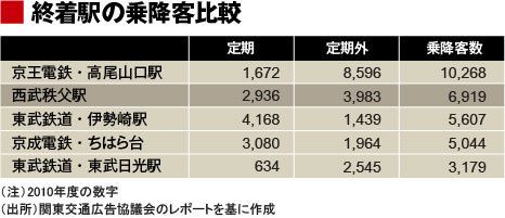 西武秩父駅の乗降客数は東武日光駅よりも多い