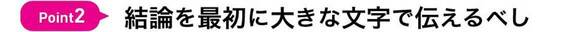そうなることを防ぐためには、結論を最初に伝えることが大切だ。その企画書でもっとも訴求したいことを、大きな文字サイズにしたり、色を付けたりするなどして目立たせるようにしたい。