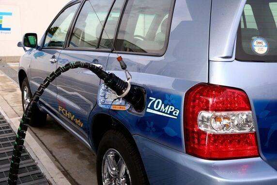 FCVはタンクに積んだ水素と空気中の酸素から化学反応で電気を作り、モーターで走る、電気自動車(EV)の一種だ。排出するのは水のみで、環境汚染物質をいっさい出さないため、「究極のエコカー」とも呼ばれる。ガソリン車並みの3分で水素をフル充填でき、水素満タン状態での航続距離も500~800キロメートルと200キロメートル程度のEVに比べて長い。