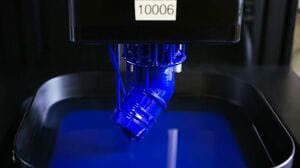 この液体はプラスチックの一種であるポリマー樹脂。何を印刷するかによって別々に配合された材料をCarbon社は用意している。例えば、自動車の外装には、耐熱性硬質樹脂を使用し、心臓用のステントのような医療機器には、柔らかく弾力があり生分解性樹脂を用いる。