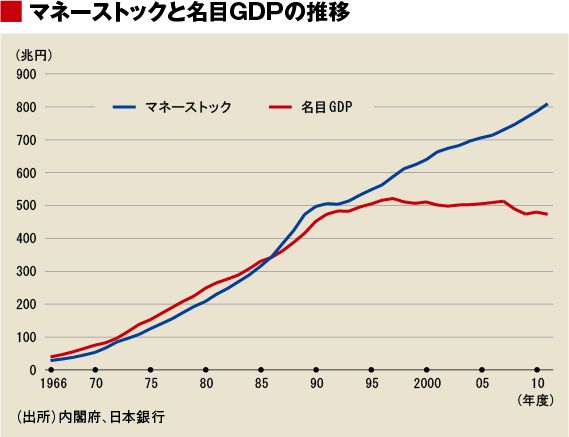 マネーストックは増えたが、名目GDPは横ばい