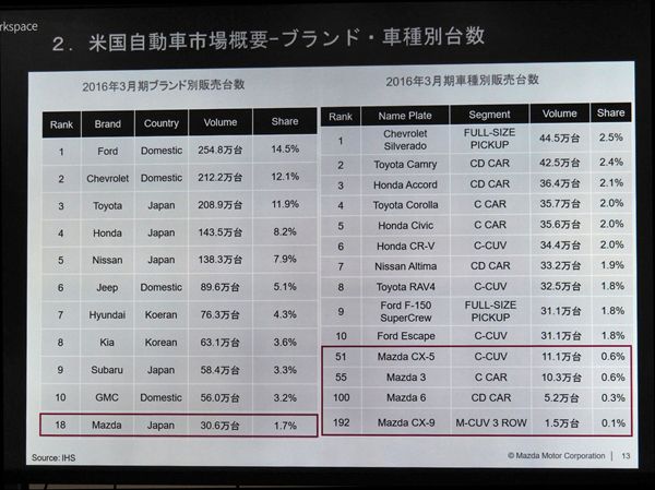 北米市場におけるマツダのシェアは、わずか1.7%