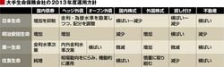 日本生命保険など大手生保4社の2013年度資産運用方針(一般勘定)が4月25日までに出そろった(右下表参照)。