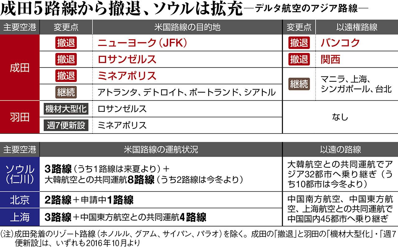その一大拠点から5つの路線が消える衝撃は大きい。特にニューヨークと日本を結ぶデルタの直行便はゼロになる。「(撤退しない)デトロイトなどでニューヨークへ乗り継げばよいので問題はない」とデルタ側は説明する。が、航空業界内では、「デルタは日本人客を見限ったのではないか」とささやかれる。