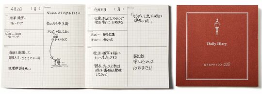 タスクやスケジュールスペースを設け、残りのスペースは自由に使いたいなら、日付の印刷がないフリーダイアリー形式がいいだろう。「グラフィーロ フリーデイリーノート」(2000円、大和出版印刷)は、一辺15.8cmの正方形のダイアリー。
