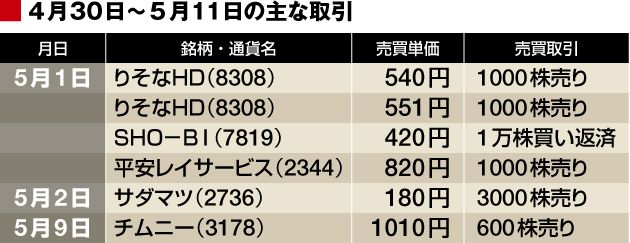 全体相場が下げる中、逆行高のりそなHD株を利益確定