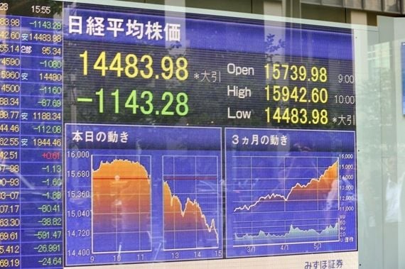 約1143円という下げ幅は、ITバブル崩壊時の2000年4月17日の1426円安以来、13年1か月ぶりの大きさで、東日本大震災(2011年3月11日)の下げ幅である1015円(同3月15日)も超えた。また、1日だけで見ても、23日の高値1万5942円から安値までの値幅である1458円は、大震災のそれ(1210円)を大きく上回った。