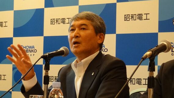 昭和電工は石油化学や化学品、アルミ、ハードディスクなど幅広い事業を手掛け、黒鉛電極も主力事業の一つだ。黒鉛電極は鉄スクラップを溶解して鋼材を生産する電炉の生産設備で、大電流を流して炉内を加熱する電極棒として使用される。