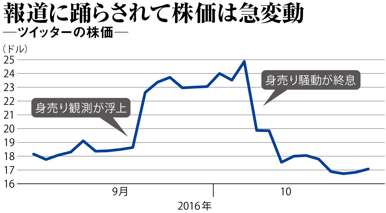 米ツイッターに突如身売り観測報道が出たのは9月下旬のこと。それから約1カ月、買い手候補として米グーグルなどビッグネームも飛び交い、ツイッターの株価も急変動した。だが、ひとまずは単独路線を継続することになり、「大山鳴動してねずみ一匹」の結果となった。