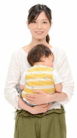 抱っこしているベビーを横から見たときに、ベビーの頭からひざまでがひらがなの「も」のようになっていること。そうすると、ベビーの頭は反らずに、自分のデコルテにぴったりつきます。自分の体が反っていないか、鏡でチェックするとよいと思います。