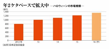その関連消費は年々膨張。日本記念日協会によると、小売り各社の商品やレジャーランドでのイベントなどを含めた市場規模は昨年1220億円に到達。今年はバレンタインデーに匹敵する1345億円にまで伸びたと推計されている。
