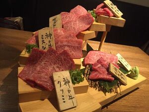 「お店の意見としては、名物の階段盛りに関しては階段の高い位置から、脂質の多い順 → 資質の少ない順番に部位を楽しんで頂けるよう並べています。食べるなら最初は脂物からを想定しております。ただ、お客さんを見ていると、三角バラ → イチボ → ザブトン → クリミ → ミスジと、脂→ 赤身 → 脂 → 赤身と脂の多い部位、少ない部位を交互に食べられるお客さんを見かけます。こういう交互に食べ比べられるお客さんは通だと思いますね。