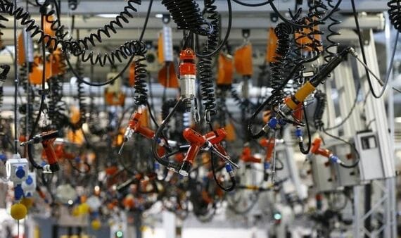 12月1日、ISMが発表した11月の製造業景気指数は53.2と、前月比1.3%ポイント上昇し、6月以来の高水準となった。工場内の写真(2016年 ロイター/Kai Pfaffenbach)