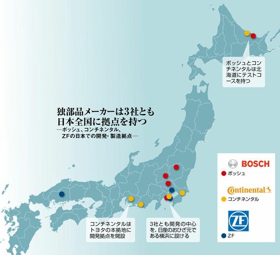 コンチネンタルだけではない。世界最大の部品メーカー・独ボッシュは、16年2月に「システムエンジニアリング」部門を日本に新設。シャシー(足回り)やステアリング(操舵機構)などの部品の組み合わせから電子制御の調整まで、横断的に統括する組織だ。