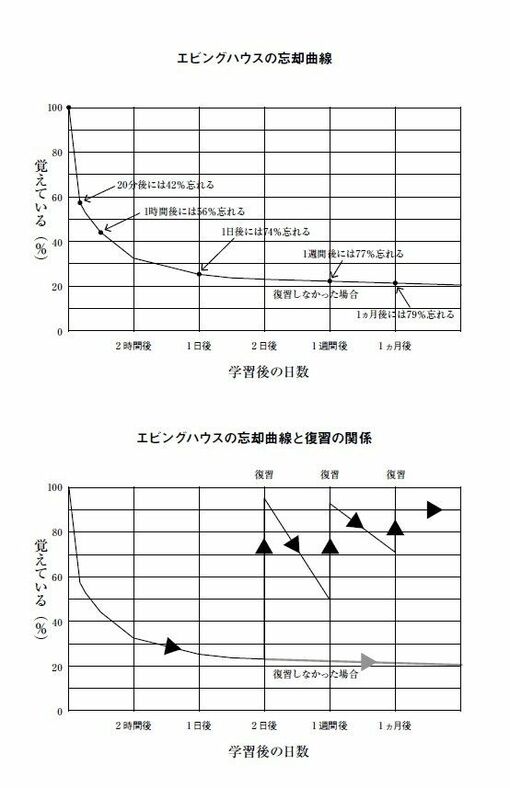 それでもなお、「現実として加齢と共に記憶力の低下を感じている」、という反論があるでしょう。そういう人たちこそ、このエビングハウスの忘却曲線に注目して欲しいのです。効率良く記憶するためには、この曲線における忘却するまでの時間に沿って復習することが重要だと言われています。そして私たちは、学生時代こんな風に何度も復習して物を覚えてきたのではないでしょうか。