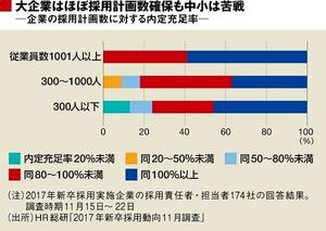 ・大手に人が流れてしまい、中小はきつかった。残っていた人材もわれわれが求める人材ではなかったので、採用しないことにし、2017年度は終了した(従業員規模300人以下、情報・通信)