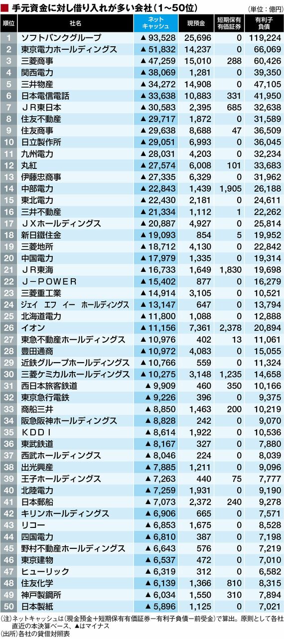 政治・経済・投資 「借金が多い」500社ランキング【2016年版】 1位ソフトバンク、重厚長大企業も目立つ 2分で読める 公開日時:2016/12/19 06:00 東洋経済オンライン編集部 フォロー 1/11 PAGES 2/11 PAGES 次ページが続きます:【続いて51~100位】 3/11 PAGES 4/11 PAGES 5/11 PAGES 6/11 PAGES 7/11 PAGES 8/11 PAGES 9/11 PAGES 10/11 PAGES 11/11 PAGES