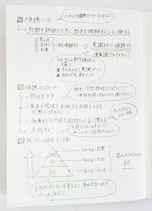 そのようなノートには、見聞きした情報だけではなく、それに関連して自分が発想したことを付け加えて書くことも多いはずです。