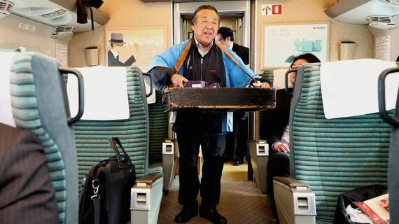 ところが12月のある日、東海道新幹線の三島駅ホームに「立ち売り」が出現。名物駅弁の「港あじ鮨」を満載した木箱を抱えた売り子の男性は「さあいらっしゃいませ~」と声を張り上げ、やってきた「こだま号」に乗り込んでいった。まさか新幹線の駅でこんな懐かしの風景が見られるとは……と、周囲の乗客も驚きの表情だ。