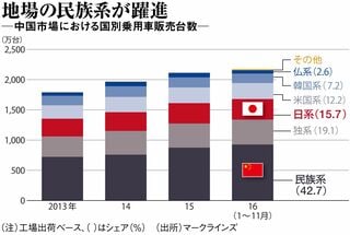 急激な拡大を続ける中国の自動車市場で、現地メーカー(民族系)が力をつけて台頭している。日・独など外資系メーカーとのシェア争いも激化しつつある。