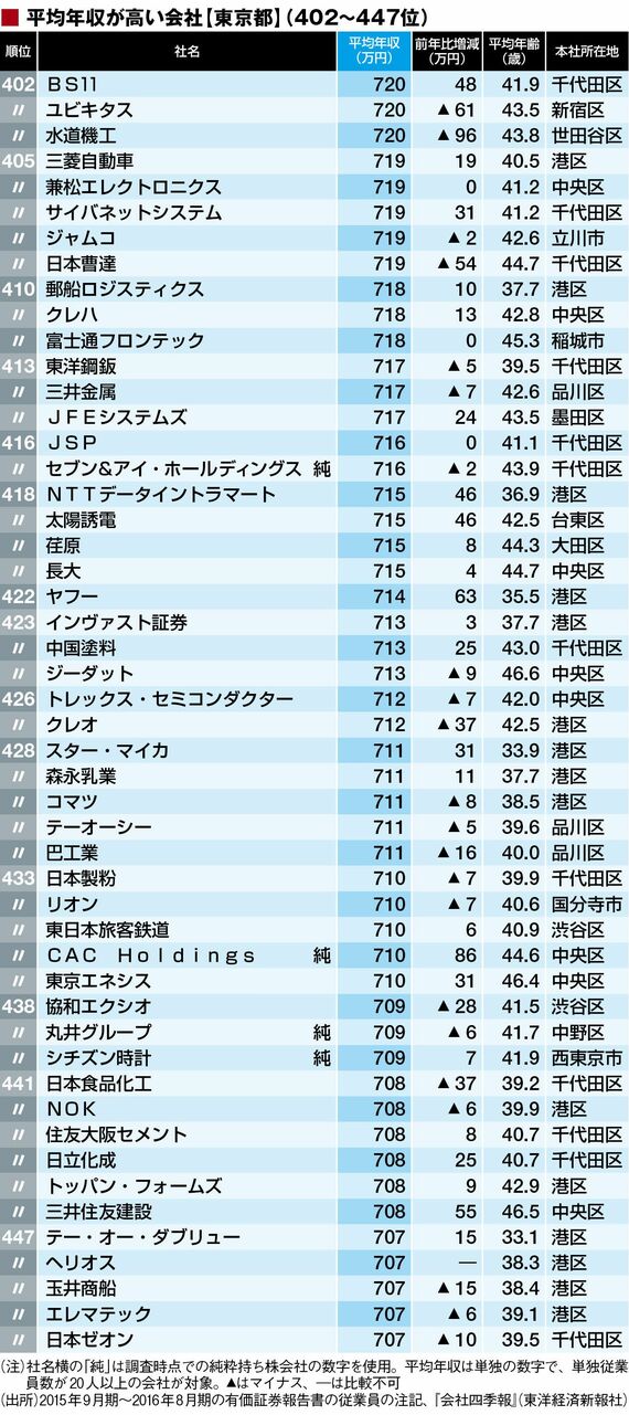 政治・経済・投資 #賃金・生涯給料ランキング 前の記事 次の記事 平均年収「東京都トップ500社」ランキング 1000万円超52社、M&A、金融、商社など高い 3分で読める 公開日時:2017/01/02 06:00 田中 久貴 東洋経済データ事業局 フォロー 1/11 PAGES 2/11 PAGES 3/11 PAGES 4/11 PAGES 5/11 PAGES 6/11 PAGES 7/11 PAGES 8/11 PAGES 9/11 PAGES 10/11 PAGES 次ページが続きます:【最後は451~500位】 11/11 PAGES