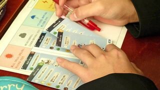 分類し終わったら、判断のポイントとなる発言やスタンプに赤丸を付け、班内で共有する。分類の仕方や、赤丸の付け方にかなり個人差が出るのは興味深い。その後グループで意見をまとめ、他班のまとめと比べてみる、という流れで授業は進行していく。教室のあちこちから「え、これくらいの発言は普通でしょ?」「いや、待て待て!」などと、活発な議論が聞こえてきた。