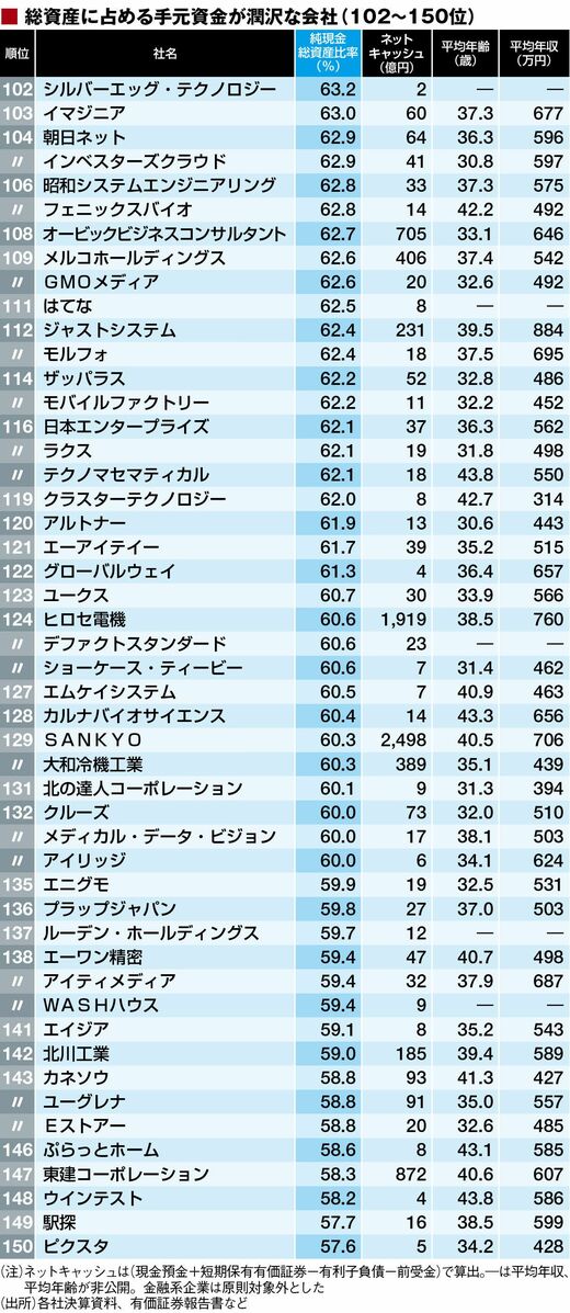 政治・経済・投資 最新!「キャッシュリッチ企業」トップ300社 バイオなど固定資産少ない企業が目立つ 3分で読める 公開日時:2017/01/06 05:00 東洋経済オンライン編集部 フォロー 1/7 PAGES 2/7 PAGES 3/7 PAGES 4/7 PAGES 次ページが続きます:【151~200位は?】 5/7 PAGES 6/7 PAGES 7/7 PAGES