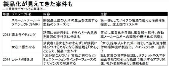2013年以降、毎年4~5件がデザインXに選ばれている。半年ごとに一定の成果を出せなければ打ち切られる。認められれば翌年度以降も予算が付き継続される。「女心」以外はまだ製品化に至っていないが、SWPのほか事業化に向けて進み出した案件もある。