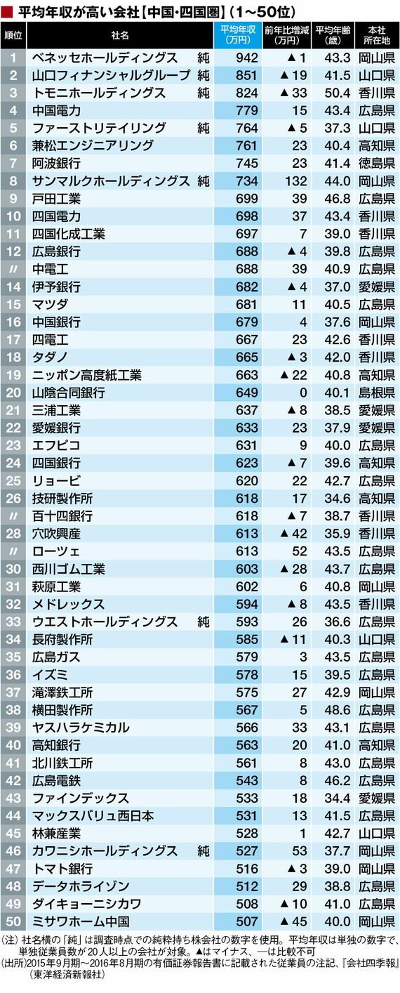政治・経済・投資 #賃金・生涯給料ランキング 前の記事 次の記事 平均年収「地方に本社置く316社」ランキング 九州、中国・四国、東北などの高給企業は? 3分で読める 公開日時:2017/01/17 06:00 田中 久貴 東洋経済データ事業局 フォロー 1/7 PAGES 2/7 PAGES 3/7 PAGES 4/7 PAGES 次ページが続きます:【続いて中国・四国の51~113位】 5/7 PAGES 6/7 PAGES 7/7 PAGES