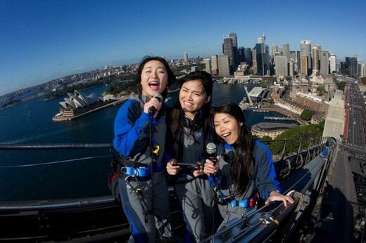 実はこれ、春節で訪れる中国人を盛大にもてなそうと、この時期だけ特別に企画されている“空中カラオケ”。ハーバーブリッジの頂上に、カラオケ用のモニターが設置され、シドニーの青空にはミラーボールまでもがきらめいている。登録されている曲は、中国で人気の歌謡曲やKPOPなど全8曲、チケットのお値段なんと約2万4000円! かなり強気な価格設定にも思えるが、シドニーの絶景を見渡しながら空の上でカラオケができる体験なんてほかにはないと、一同、テンションはマックスだ。