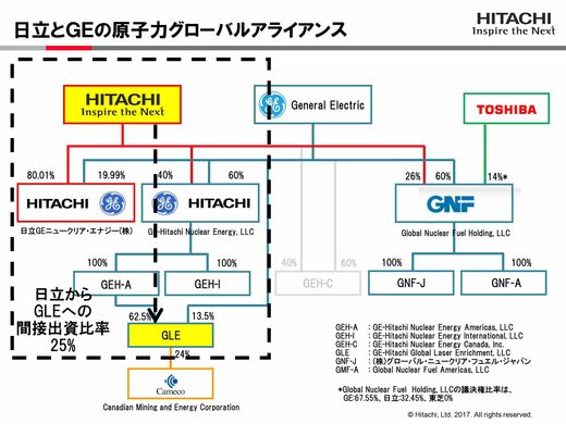 日立は、開発断念で新技術によるウラン濃縮で見込んでいた将来収益が得られなくなったことで、日立が持つGEH株の価値が下がった、と説明している。