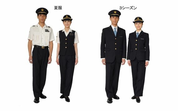最大の注目点は、これまで夏服でもネクタイ着用(新幹線乗務員などはジャケットも着用)だったのが、駅・在来線乗務員・指令員用はネクタイなしの半袖開襟シャツに、新幹線の乗務員はネクタイは引き続き着用するものの上着なしのスタイルに変わること。一方、現場長用は年間を通じてダブル6ボタンのスーツスタイルだ。