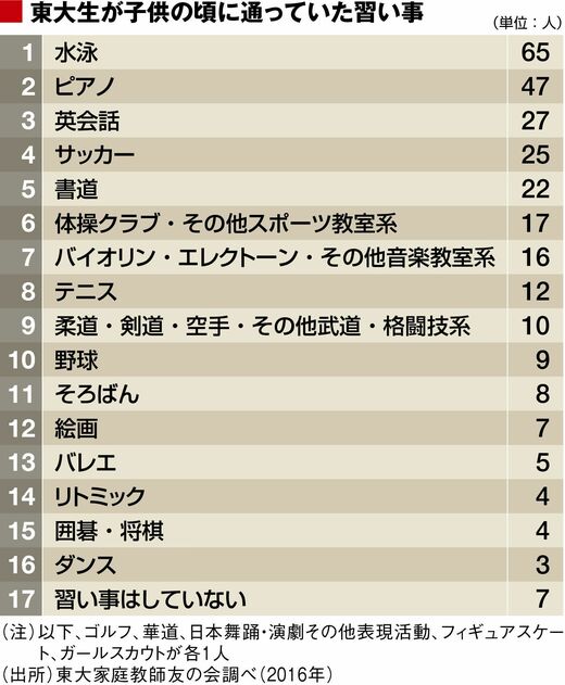 東大生の多くがピアノを習っていると、よくいわれる。実際にそれを示す調査結果も多い。今回、拙著『習い事狂騒曲 正解のない時代の「習活(しゅうかつ)」の心得』を著すにあたり、「東大家庭教師友の会」の協力を得て、東大生100人にアンケートを採った。