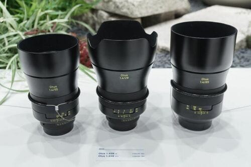 左から「Otus 1.4/55」(税別42万5000円)、「Otus 1.4/28」(税別62万9000円)、「Otus 1.4/85」(税別49万円)。いずれもキヤノン用(ZE)とニコン用(ZF.2)が用意される(写真:永山 昌克)