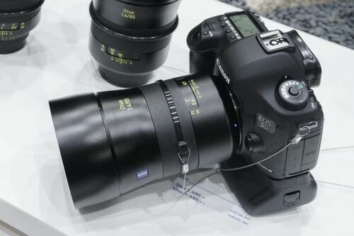 キヤノン「EOS 5D Mark III」に装着した「Otus 1.4/55」。曲面が美しい金属製鏡胴であり、目立つ黄色い文字と青いツァイスのマークは高級品の証し(写真:永山 昌克)