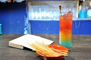 「極楽浄土ください」。若い女性がバーカウンター越しにオーダーする。出てきたのは、赤・黄・青の何とも色鮮やかなカクテルだ。ただのイメージではない。仏教の経典の1つ「阿弥陀経」に記された、極楽浄土の色を忠実に表現したものだ。