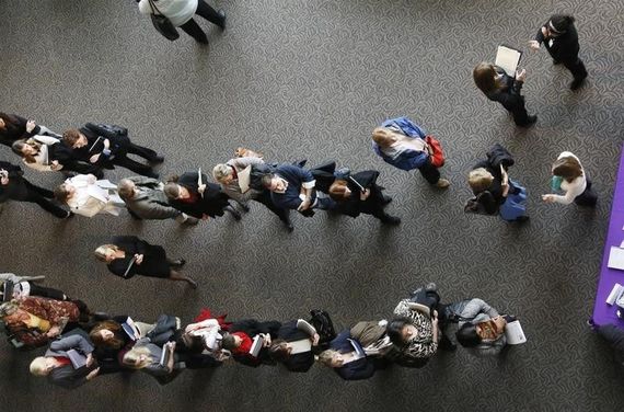 3月10日、2月の米雇用統計は、非農業部門雇用者数が23万5000人増と、市場予想を上回った。写真はデンバーの就職フェア会場で2013年4月撮影(2017年 ロイター/Rick Wilking)