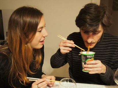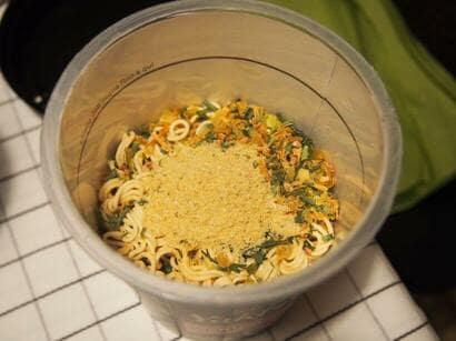 お湯を捨てるスタイルは、世界のぺヤングと一緒。ソースをプラスして、かき混ぜて試食です!