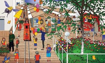 デザイン上でも水戸岡氏のアイデアがふんだんに詰まっている。たとえば、車輪の付いた可動式ハウスや屋台。地面に定着させないことで建築基準法の適用外とするのが目的だが、季節やイベントに応じて並べ替えることができる。また、園内には神社、教会、お寺なども設置、駅ホーム近くのスペースにテーブルを置いて結婚式やパーティもできるようにしたいという。遊園地の名前は「森の小リスキッズステーションin軽井沢」。長い名前だが、「“小リス”とか”リスキッズ”とか、お客さまのほうで短い愛称を付けてくれるでしょう」と、水戸岡氏は意に介さない。