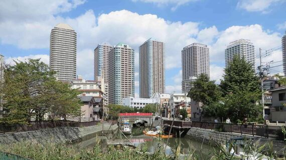 隅田川と豊洲運河に囲まれた中央区佃。銀座から程近いこの湾岸地域にそびえ立つタワーマンション群「大川端リバーシティ21」をご存じだろうか。1988年に賃貸住宅の募集が始まった当初は50倍と、一世を風靡したタワマンの先駈け的物件だ。「眺望はウリになる」ということを世間に知らしめたのもこの物件である。
