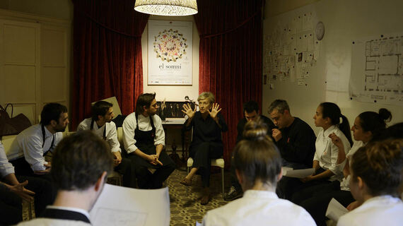 ランチ営業がない毎週火曜日、プーチはアル・サリェーにやってきて、スタッフの声に耳を傾ける。「厨房は高温で、たくさんのスタッフが隣り合って猛スピードで仕事をしている。それも包丁を持って。とても緊迫した職場であるのは間違いない」。