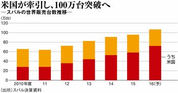 米国ではスバル車人気で在庫が足りないため、現地工場の生産能力を従来の年20万台から、2016年末に年40万台弱へと倍増させた。「現地のディーラーからはまだ車が足りないと言われる。やる気があるんですか、とせかされる」(吉永社長)という“ぜいたくな悩み”はまだ続きそうだ。