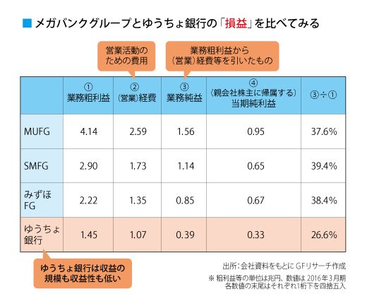 預金(貯金)の総額だけを見ると、ゆうちょ銀行が約178兆円と、MUFGの161兆円をはるかにしのぐ規模だ。民営化以前からの郵便貯金への信用に加え、拠点の数やATM設置台数など、預金者との「接点」はメガバンクグループと比較すると圧倒的に上回っている。これまでの金融商品の魅力や地域での信用が厚いといった歴史的な背景がある。
