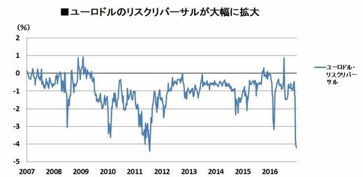 また、3カ月物でもユーロプット・オーバーがじわり拡大していることから、市場参加者が当面のユーロ安ドル高トレンドに備えている様子がわかる。昨年6月の英国民投票、11月のトランプショックに続き、4月23日に行われるフランス大統領選挙でも「まさか」の結果となるリスクに備えて、ユーロの下落に対する投資家のリスクヘッジが加速している。市場の関心は地政学リスクよりもフランス大統領選のほうが大きく、ドル円の上値が重いのも、フランス大統領選に対する不透明感が影響している可能性が高い。